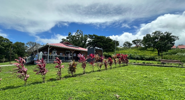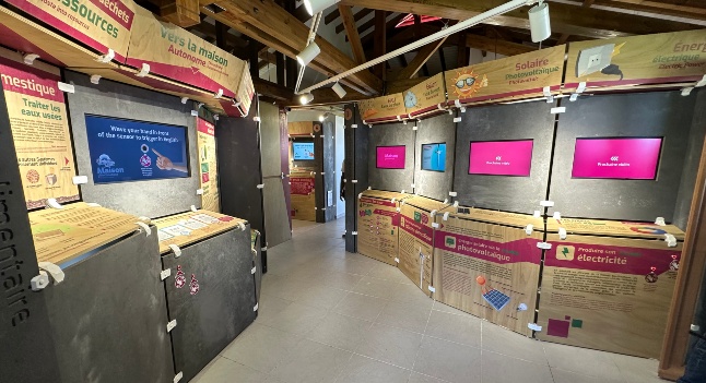 L’espace “Maison” présente une structure bioclimatique adaptée au climat guadeloupéen, avec panneaux explicatifs, écrans tactiles et maquettes interactives.